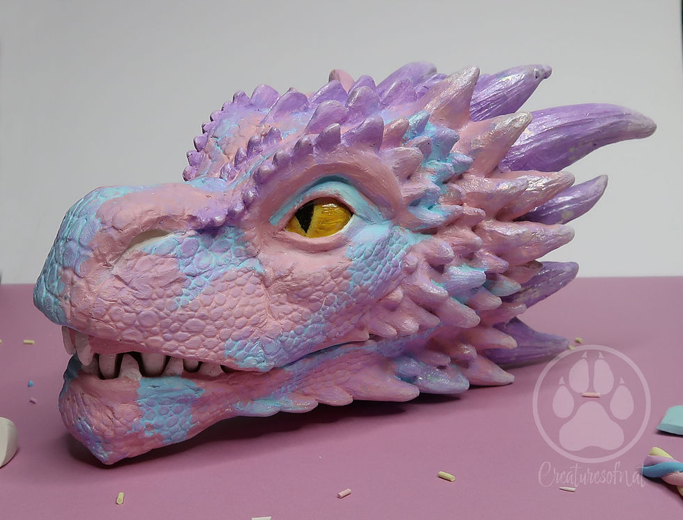 Fairy-Kei Dragon head sculpture - Pastel Pink, Blue & Purple